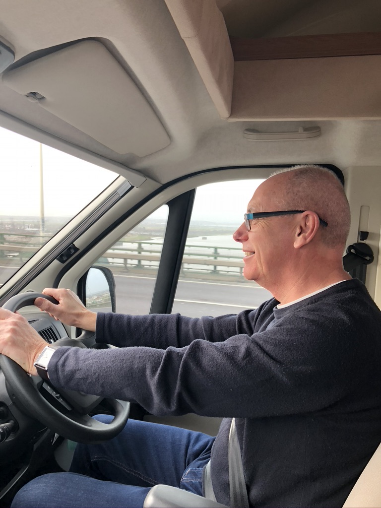 I drove the first leg, stopping at Dartford Services – in the lorry park – for a quiet, picturesque lunch (not) – and then it was over to JW for his first drive in a while.