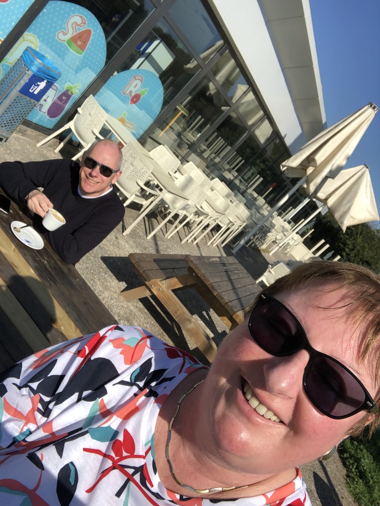 And so we set off for the border – we had been driving for some time when – replicating my confusion from yesterday, I suddenly thought we must’ve passed the border and I’d missed it. I ask JW “have you seen a big sign saying Spain?” He’s not sure either!! How disappointing, we’ve missed it! However, after several more miles, we pass the sign …………… we’re in Spain!!