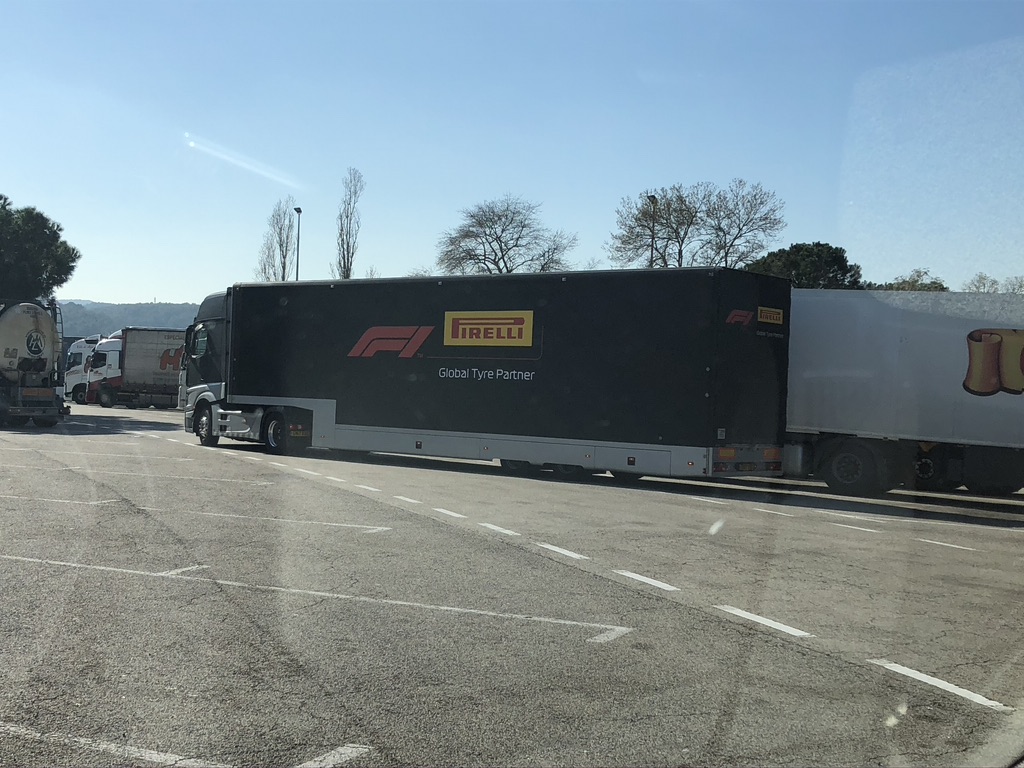 Some sort of Grand Prix event in Barcelona – Em mentions it on WhatsApp and we immediately see some lorries leaving the services.