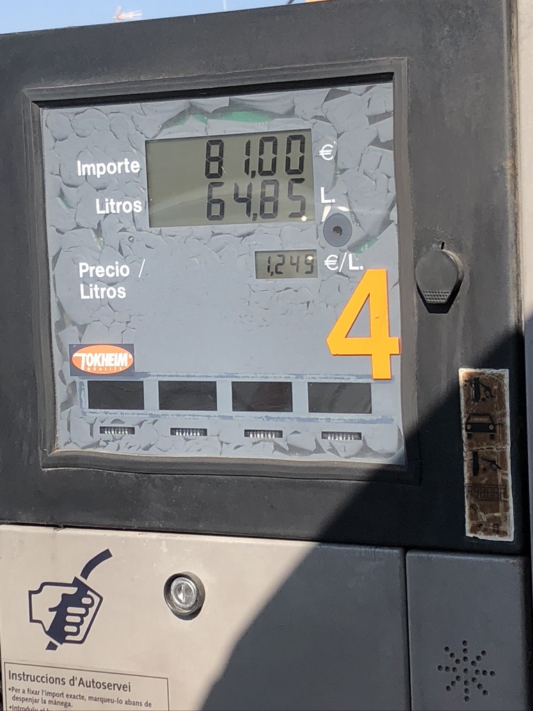 I set off from the site for the first time on my own; it’s good to get going. I stop for fuel before joining the motorway – good price at €1.249 – I think the cheapest we’ve seen. It’s a bit of a stretch for the cable and I have to shunt the motorhome back a bit to get it to reach. All good, I fill to the brim.