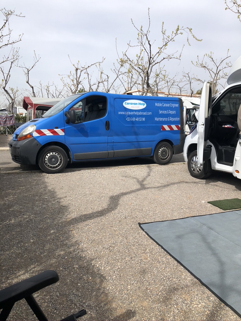 I asked the ‘Ralliers’ if there might be a caravan/motorhome repair place I could take the motorhome to. They said there was a British mobile engineer who travels all over France and Spain, basing himself on around 6 sites at various times of the year and travelling from there.