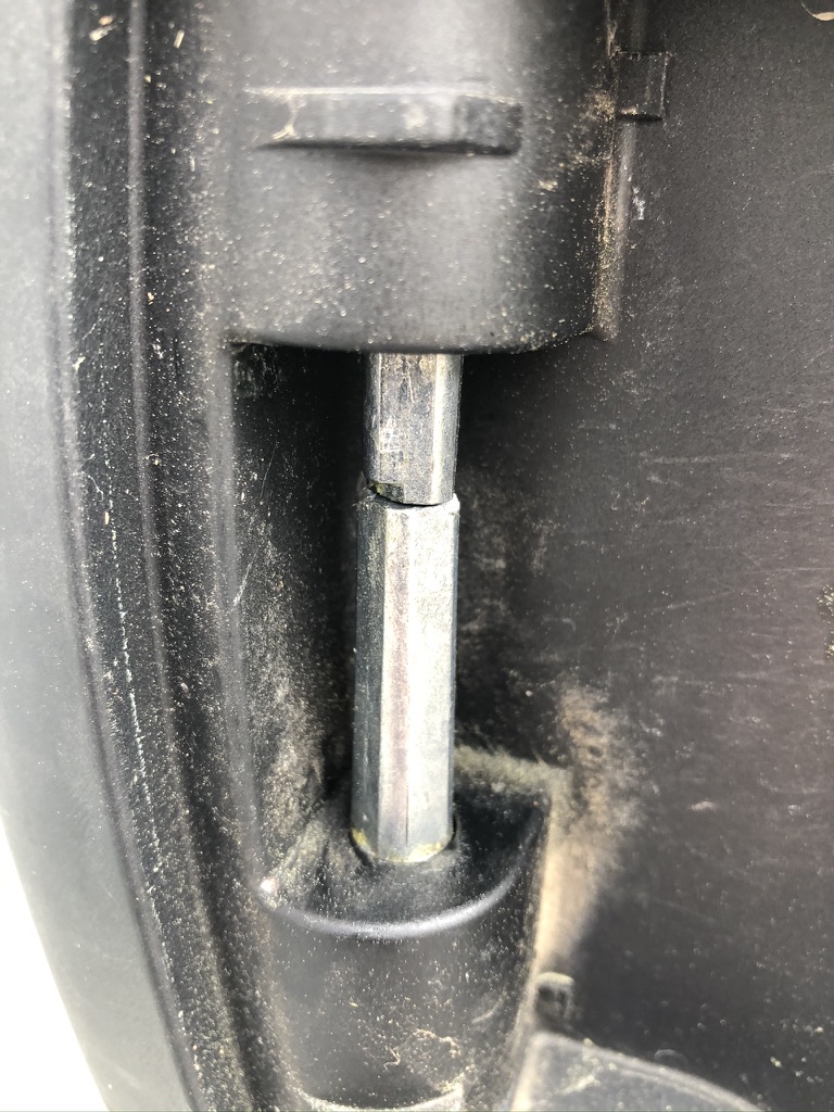 Back on the 20th February, JW and I had a problem with the habitation door not opening from the inside. Subsequently, I can’t remember which day, but the door became well stuck and, in my endeavours to open the door from the outside, the external handle snapped off in my hand leaving the attractive look below!