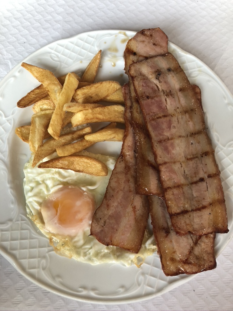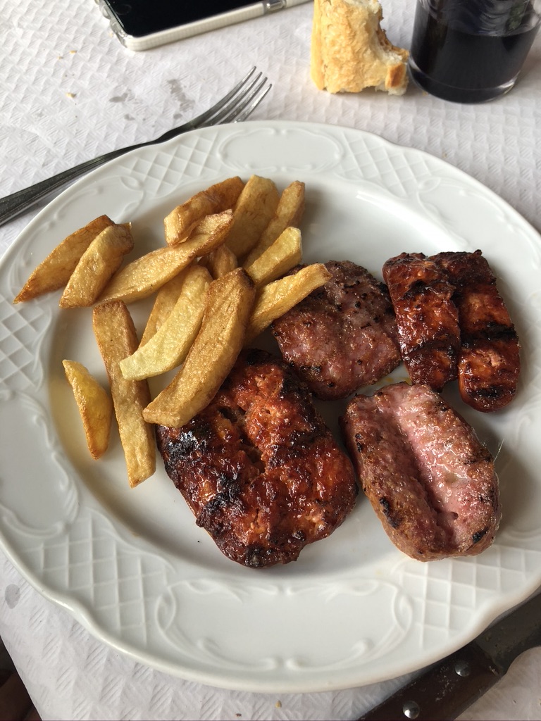 Having ‘done’ the castle, we really struggled to find somewhere for lunch; we were out of season; rather late in the day; and there was just nothing suitable to be had. So we moved out of the upper town to a restaurant I had noticed on the way in. When we got there, disappointingly, it seemed to be a transport cafe; nevertheless, we were hungry and needs must. The locals definitely gave us a curious look, but we received a nice welcome and as soon as we were seated – mineral water, menus and lovely bread were delivered. The food was brilliant – my starter was ham and white asparagus (yum) and main of ham, egg and chips and Nigel’s sausage, egg and chips – were excellent!