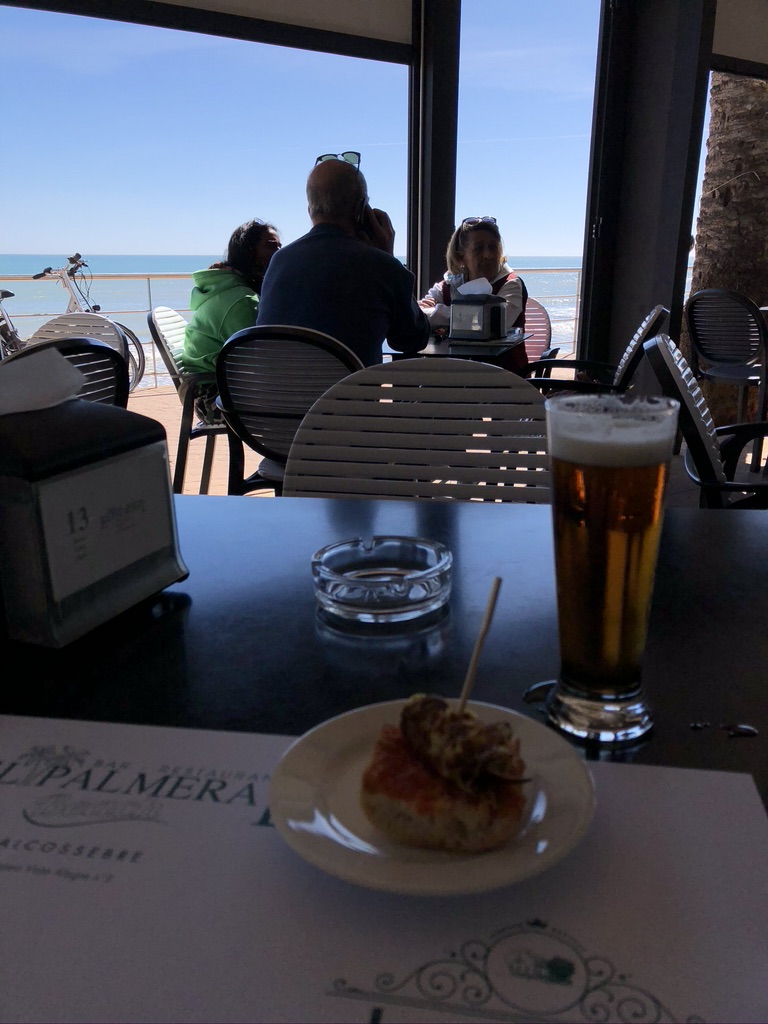 I cycled back and went into the centre of Alcossebre for some supplies, this time at the Spar (bigger than our Spars) and then settled down for some light tapas and lunch at El Palmeral before the last leg home.