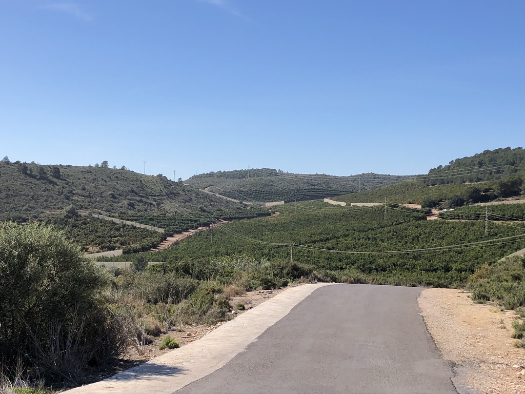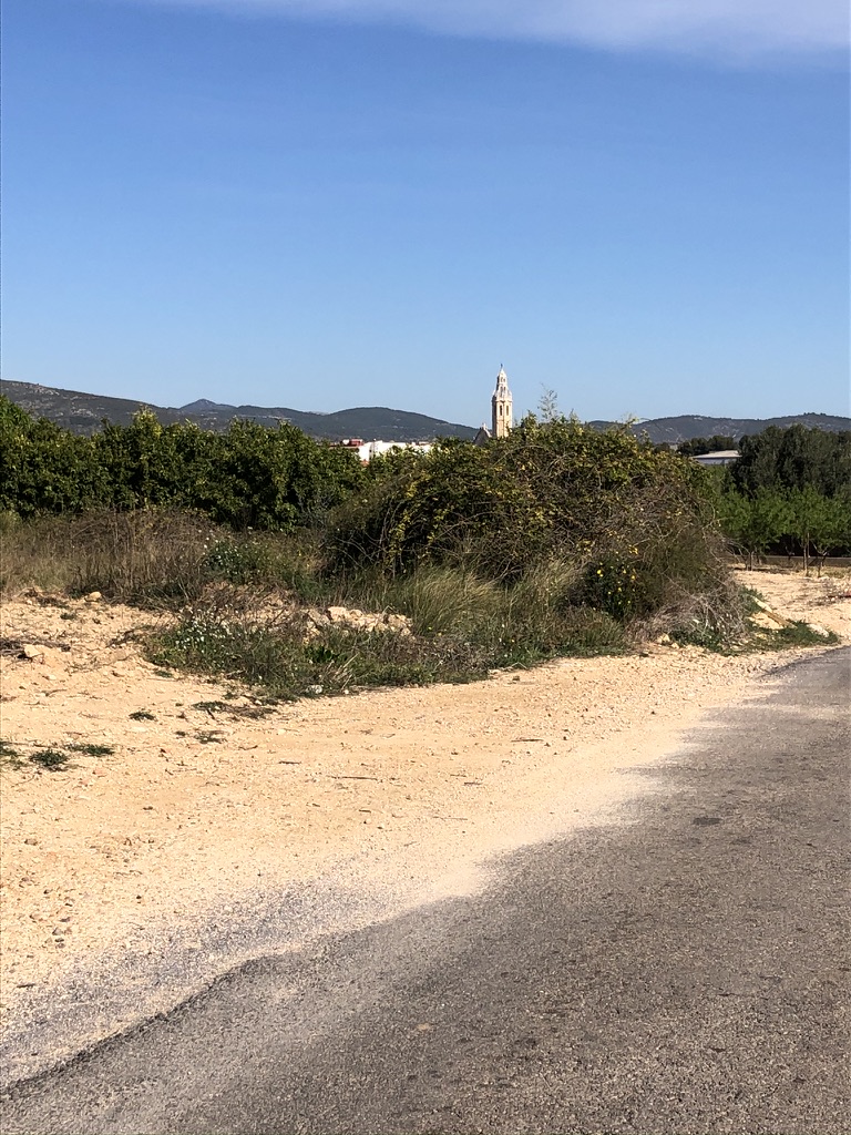 Apart from a short stretch of dual carriageway to get over the motorway, the journey was on quiet roads and a ‘service’ road which runs alongside the railway track. I passed through lush orange groves and could see my destination way before I arrived.