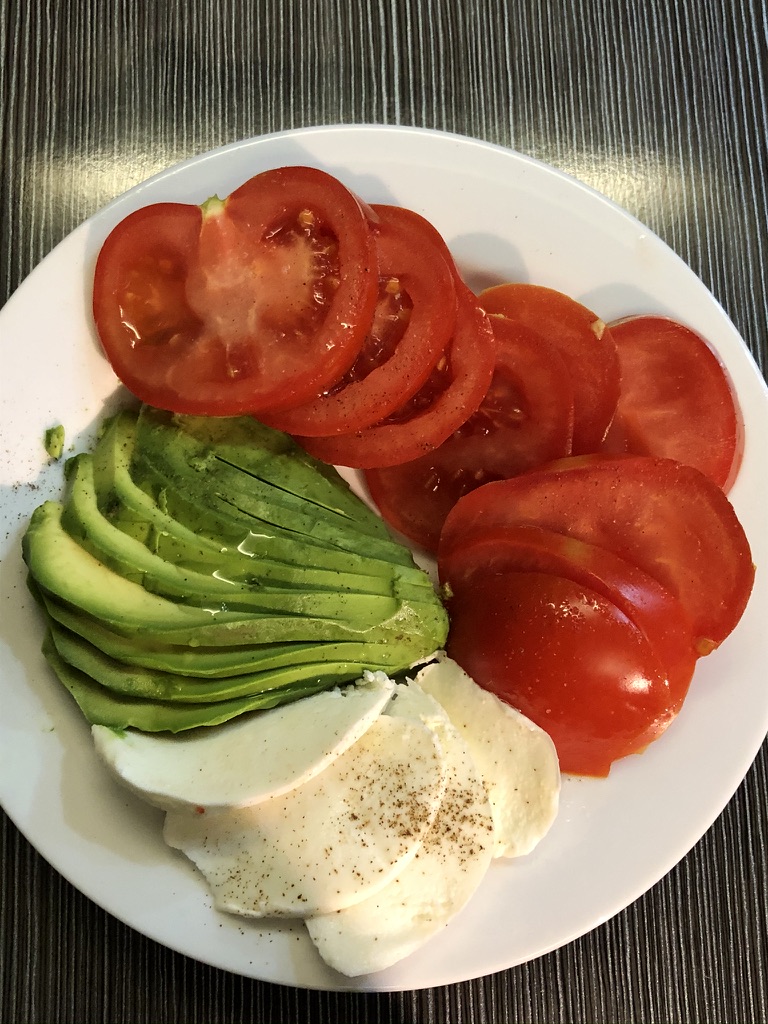 I bought myself some mozzarella, tomatoes and a ripe avocado from the site supermarket – I can see now I should’ve divided it up over two nights. Still, no need for a main course!