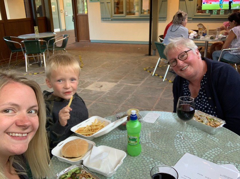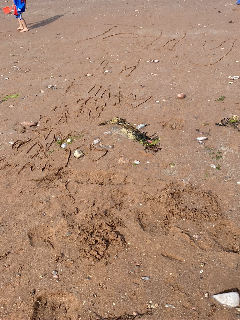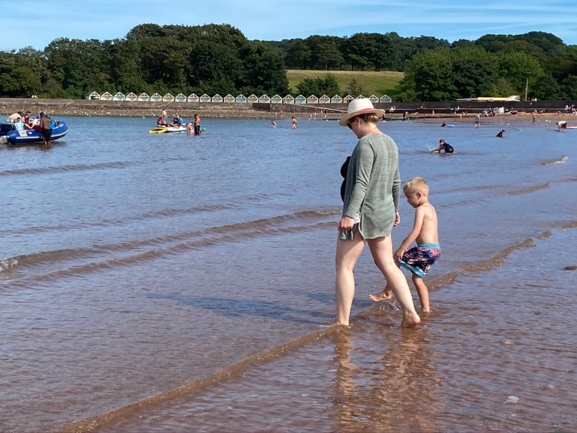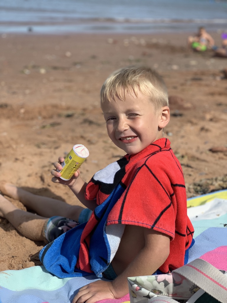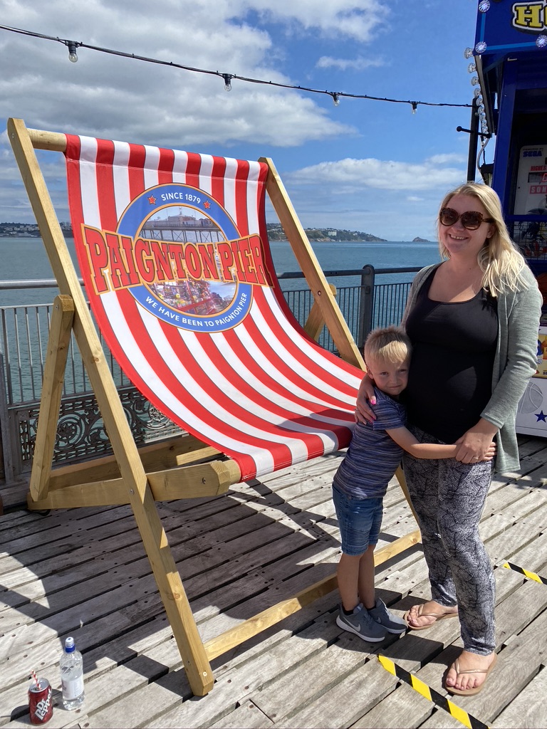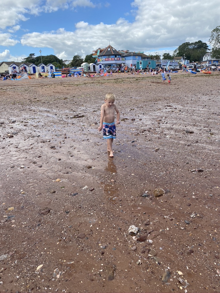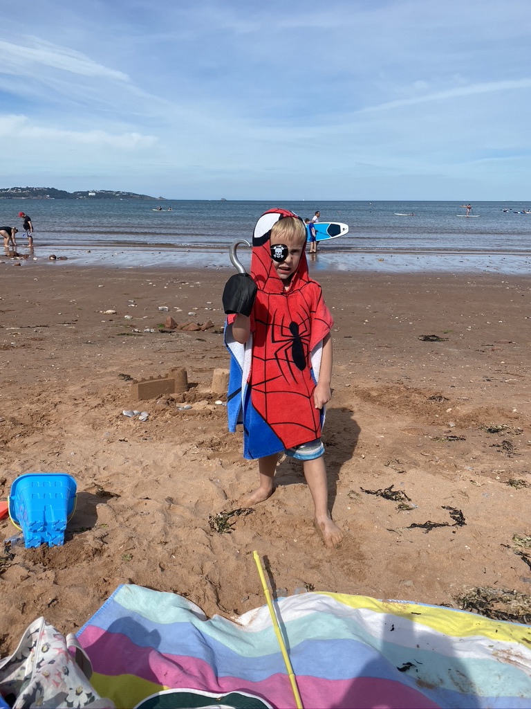 Paignton is the busiest place I’ve been to during the pandemic, we had some elevenses, strolled along the pier, Ted really enjoyed the enormous slide at the end. We went into a few shops to buy some beach shoes for Ted and a sun hat for Em. Ted spent some of his pocket money on a pirate set.