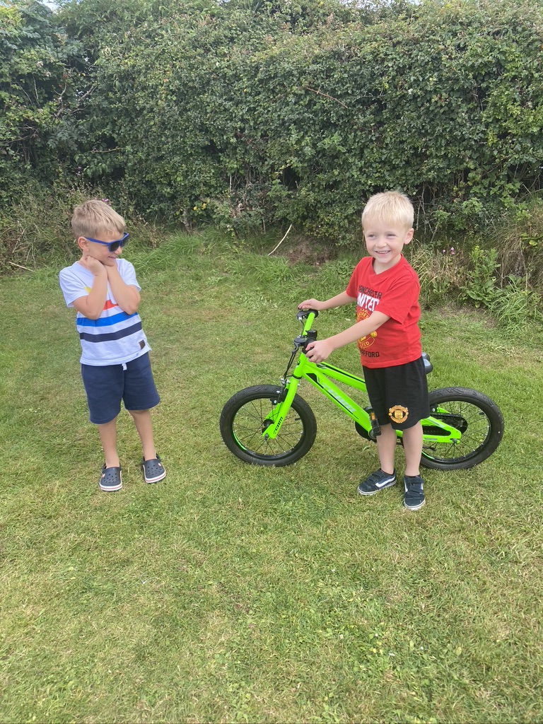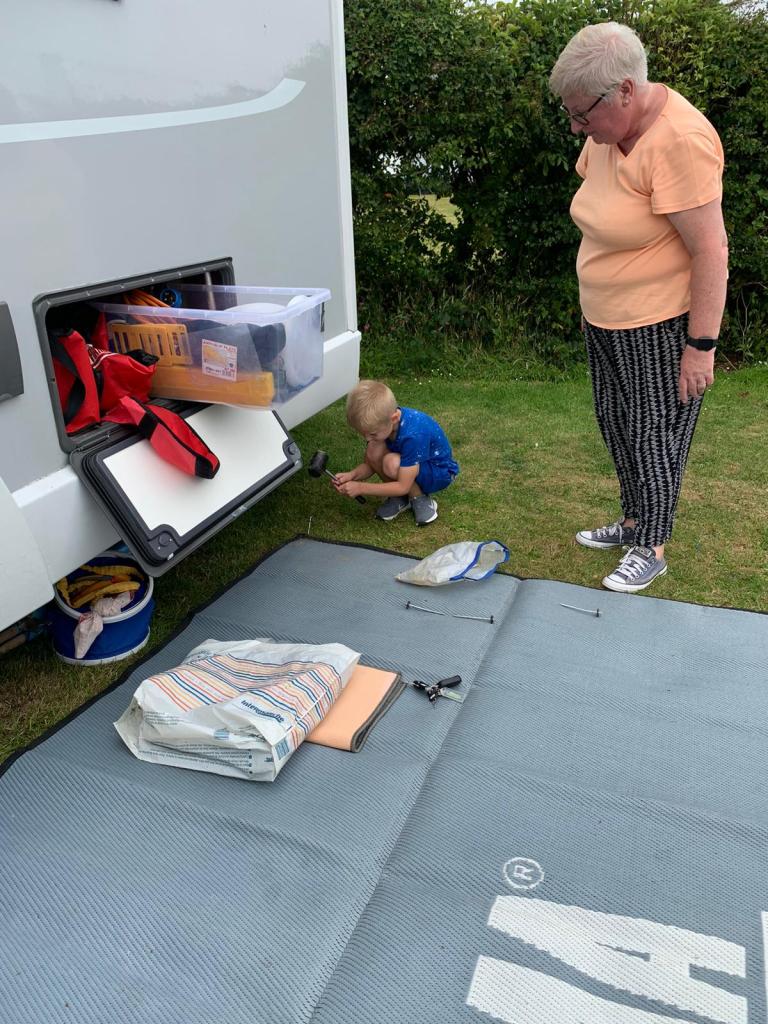 Back at the site …….. Teddy did learn to ride his bike a while back but, without practice, has lost the skill. After a few goes with support up and down the road by our pitch, he has cracked it again; it is so good to see him riding and gaining confidence. ‘Harry’ from a neighbouring caravan came out with his Dad to give Teddy some sound advice about starting off on the little slope to get moving more easily.