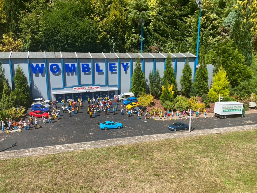 Today we are off to Babbacombe Model Village – https://www.model-village.co.uk – it really is an excellent place to visit with a night time visit option in normal times. The clever names of venues, shops etc. are really funny and entirely wasted on children! Wombley football stadium below and the ‘Pear’ shop, rather than the Apple Store and many, many others.