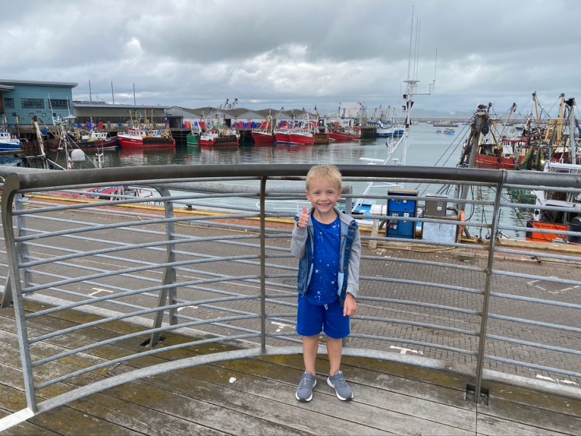 Early evening we venture into Brixham for some fish and chips out of paper. Slight problem in that there is a downpour which means all the benches are wet and there is nowhere to sit, so we eat-in at Simply Fish who are also doing a great job in the new Coronavirus world. Then a stroll along by the harbour and marina whilst Ted eats his Strawberry ice cream with blue bubble gum sprinkles – yum! We’ll check out that pier and sunset later in the week.