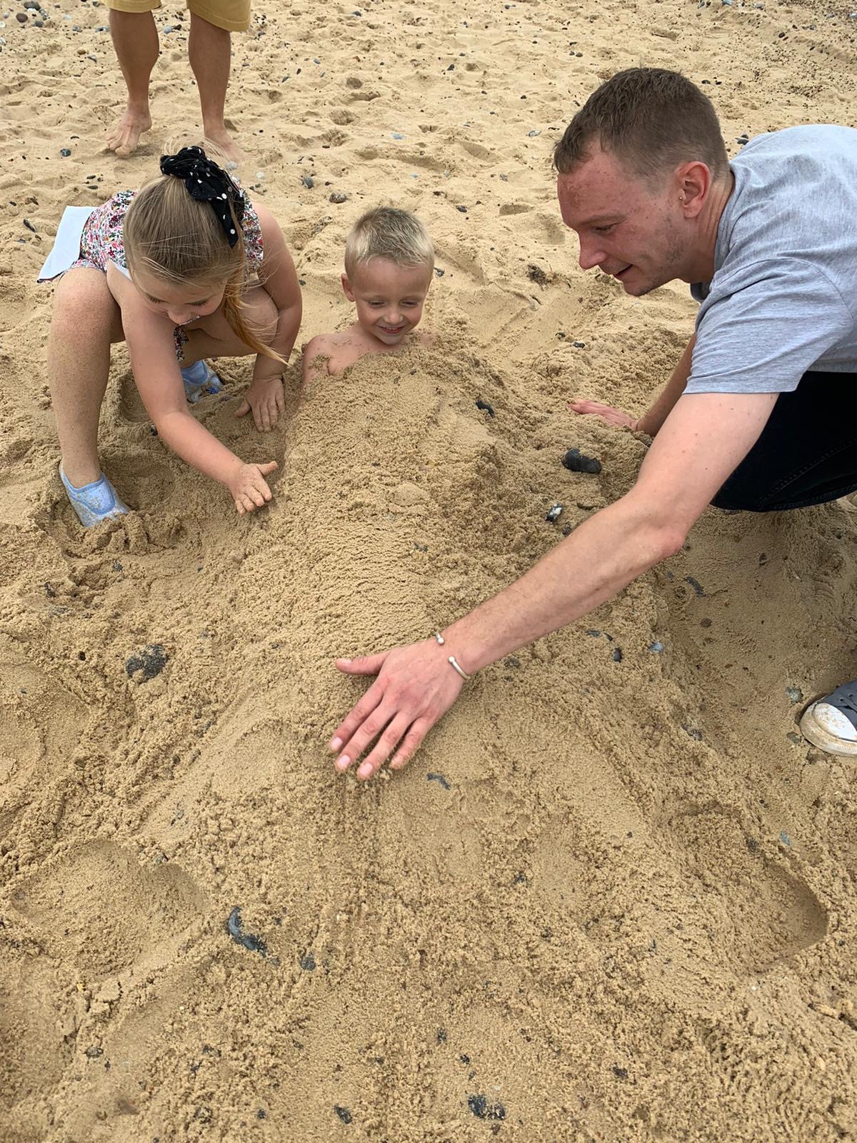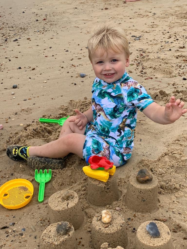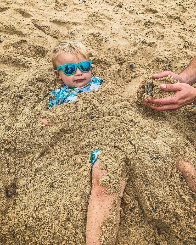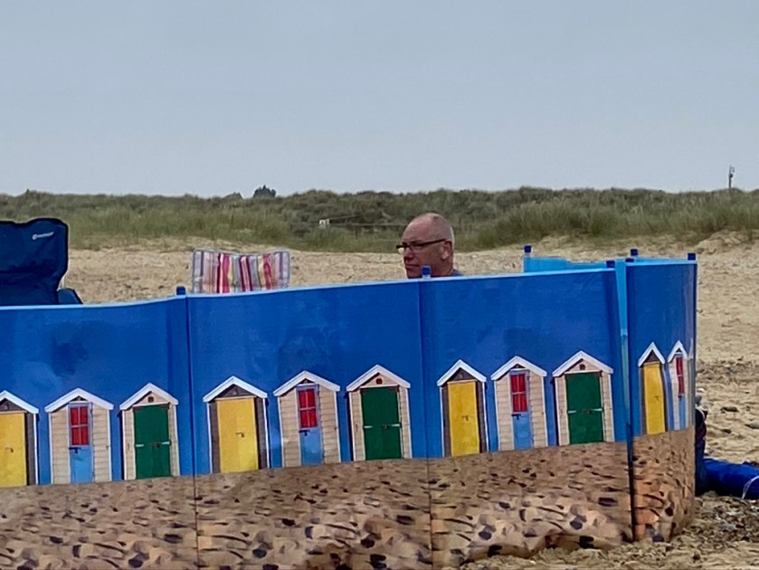 OK the weather wasn’t exactly hot and sunny. In fact there was a haar making everything somewhat damp! But the site is positioned right on the beach so we packed a picnic and set off for some quality beach time. It was a little windy and we were almost the only people there but, hey the kids had fun. My brother notsomuch – you can see him below huddled behind the windbreaks under various fleeces! 🤪