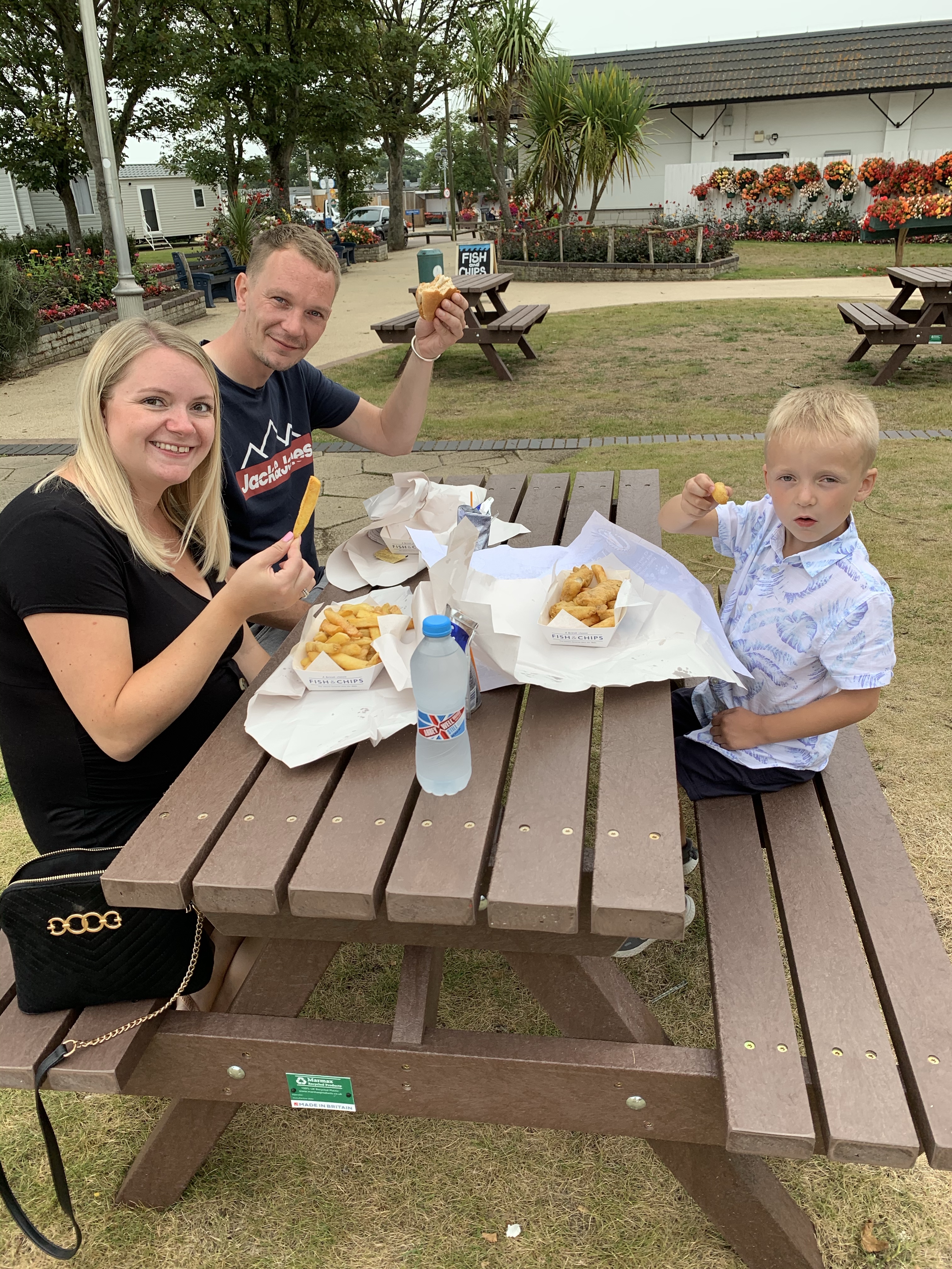 And then the major packing up and dividing of leftovers. Em, Chris and Teddy were staying Sunday night, but the rest of us are leaving early evening. Just before departure we had a takeaway of fish and chips on the site.
