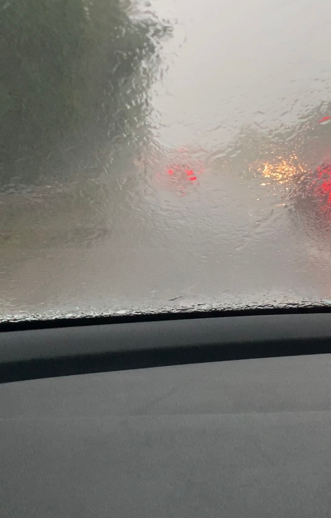 The journey home for us was in the most horrendous rain storm through which I’ve ever driven; the amount of water coming down and flooding across the roads was epic. This was my view through the windscreen. 😳
