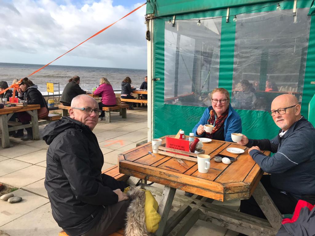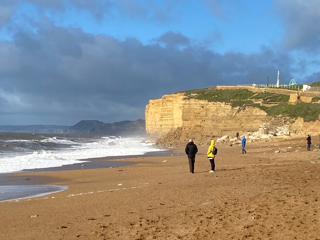 Today a stroll on Hive Beach and then elevenses at the famous Hive Beach Café https://www.hivebeachcafe.co.uk, so now we’ve been to all three of their café/restaurants – stunning day – and lovely to be outside drinking coffee in October. (My brother didn’t think so – brrrrr! 🥶).