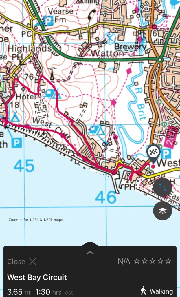 So, after elevenses at The Watch House Café https://www.watchhousecafe.co.uk, the second in the Hive Beach chain, we set off on a circular walk from West Bay, via Eype. Broadchurch fans will recognise below the lawyer’s home on the cliff and, at Eype, the scary chalet; it looks nearer to the edge of the cliff than it did during filming!