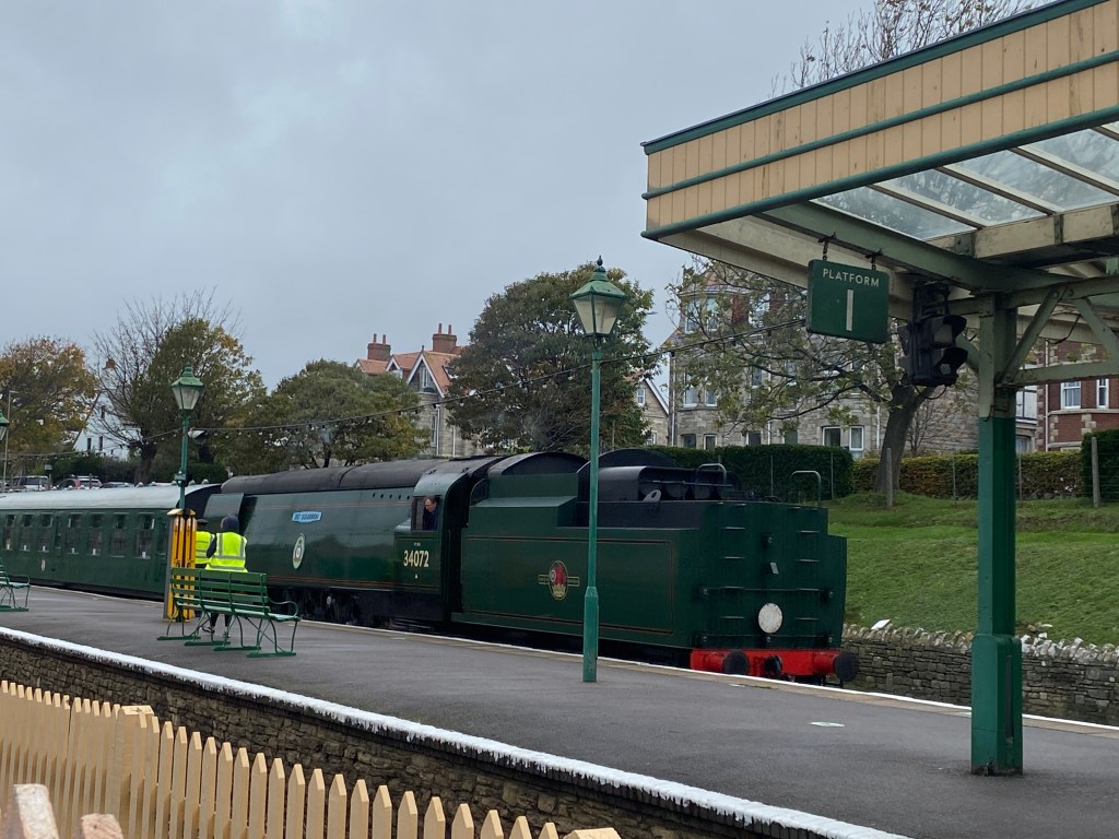 First mistake, we were at the stop far too early as Google had also allowed time for our walk as had we, giving us around 35 minutes to wait. We decided it might be quicker to get a bus in the wrong direction to Corfe and travel on the Steam Train. We watched the bus on the live tracker leaving Swange and then, in horror, make a turn and go up to the top road. It turns out there is no bus in the Autumn/Winter on the lower road, so we are now miles from any transport, oh and it was pouring with rain. It was one silly mistake after another. Best option …….. burst into tears!