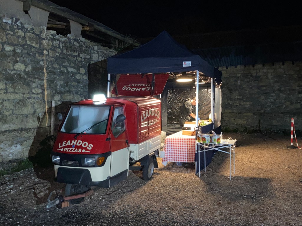 In the evening, drinks and canapés in the motorhome followed by a takeaway pizza from a visiting miniature van – excellent, proper pizza!