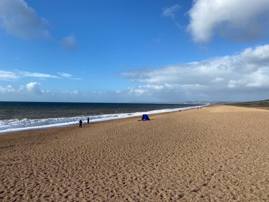 We continued along the lovely coast road to West Bexington so we could review – in the daylight and in the dry – the giant puddles in which we had trodden on Saturday night. Wow what a difference!
