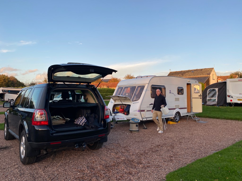 My brother (JW) and Elaine arrived and were able to pitch opposite. It’s been a while since the caravan has been out and about but, even though it is 16 years old now, we’ve had it from new and it’s still looking pretty good – JW takes care of the washing etc.; I take care of the admin.