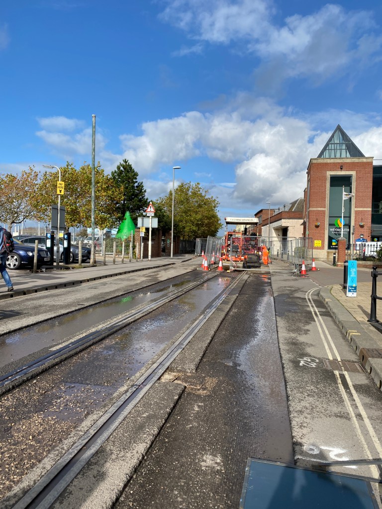 Continuing to Weymouth, the first thing we saw was the council digging up the train track that used to run through the town’s streets to the harbour. Such a shame it couldn’t have been saved and used for some sort of tourist tram or similar. 🥲