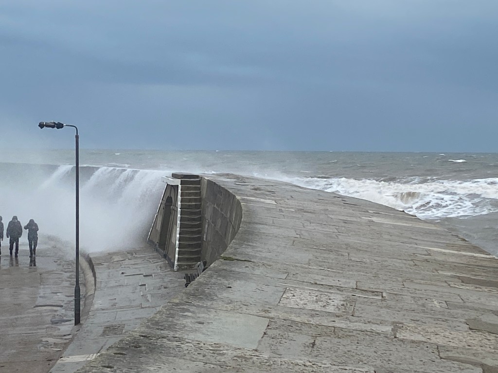 A treat tonight with dinner out at The Club House at West Bexington – part of the Hive Beach Café group – https://www.theclubhousewestbexington.co.uk. I may have mentioned it had rained during the day. It has since rained more and more and we set off in JW’s car hardly being able to see a few feet in front of the bonnet as the rain lashed down and the wind blew us sideways.