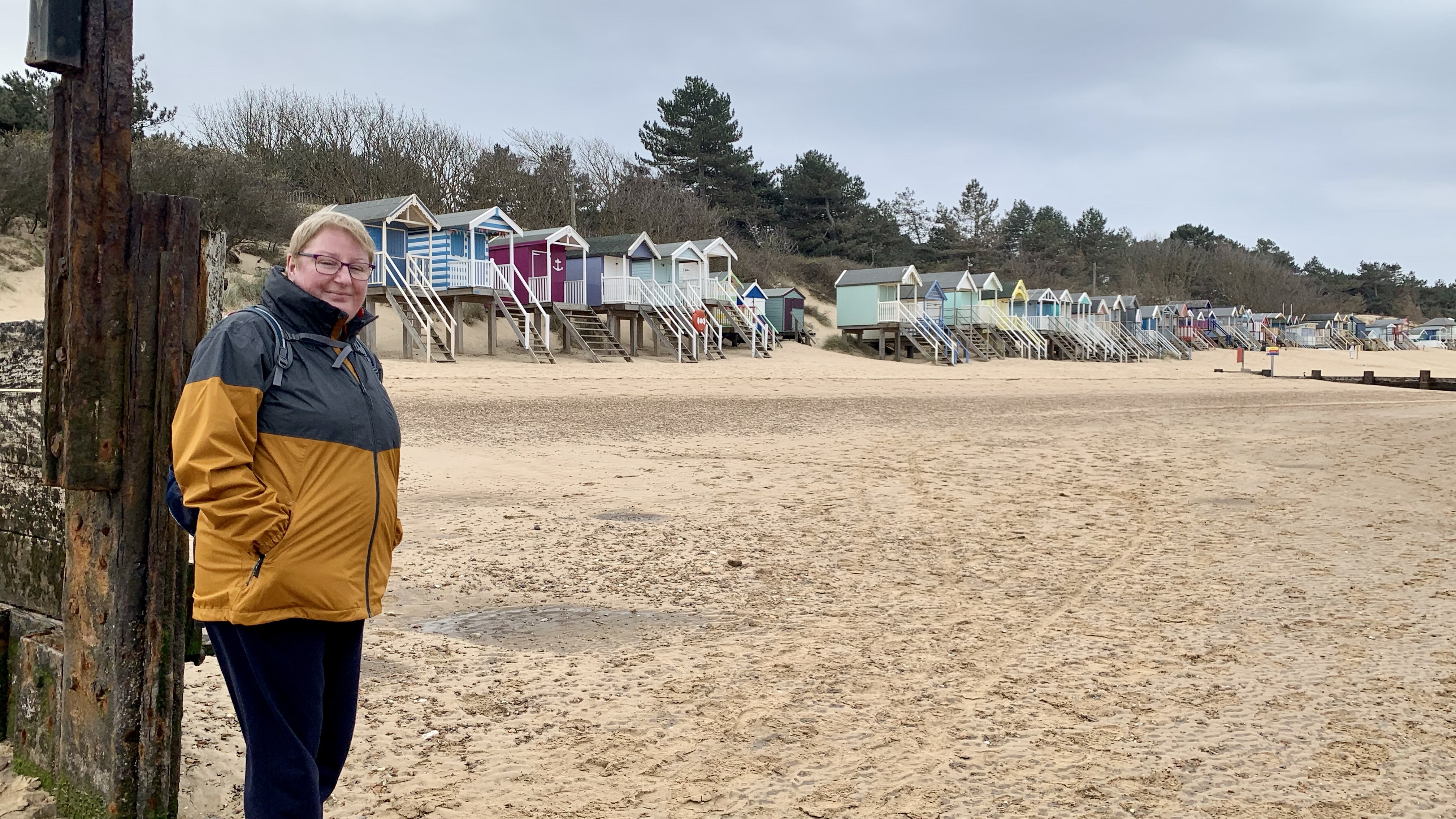 Today a classic walk along the beautiful, expansive beach at Wells-Next-the-Sea by the side of the glamourous (expensive) beach huts and then back through the glorious pines.