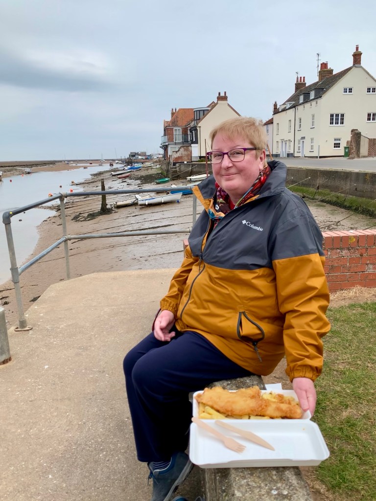 A fish & chip lunch from the famous French’s Fish Shop http://www.frenchs.co.uk/ frying since 1921. We found a lovely spot to eat outdoors on the edge of the harbour with a stunning view …… until a big black cloud, followed by a howling wind from nowhere and thus had freezing chips!!