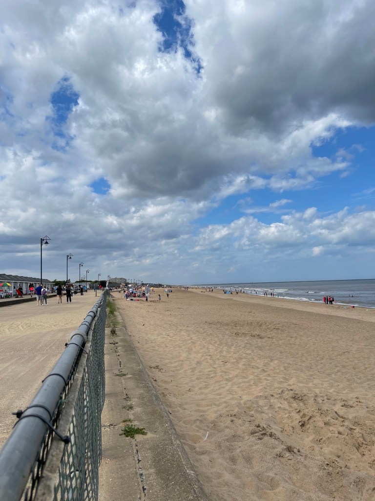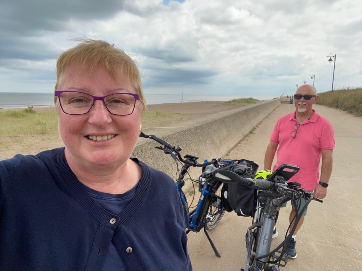By the time I woke up, Husband had been for a several mile stroll. Our plan this morning is a bike ride! It’s a short ride to the seafront where there is a promenade on which you are allowed to cycle. Destination : Mablethorpe!