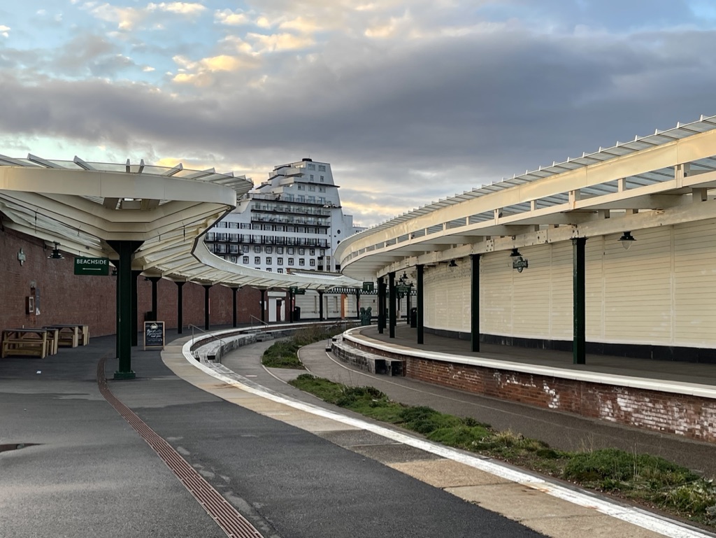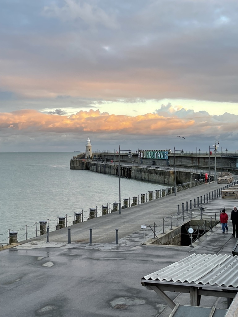 We had a pleasant couple of hours strolling around the renovated Folkestone Harbour Arm area – the old Folkestone Harbour station and adjoining pier (used in earlier times for the boat-train to France) have been restored and now contain cafés, bars, restaurants, shops & markets. Very few open in the Winter but definitely a good use of the old harbour station. https://folkestoneharbourarm.co.uk/