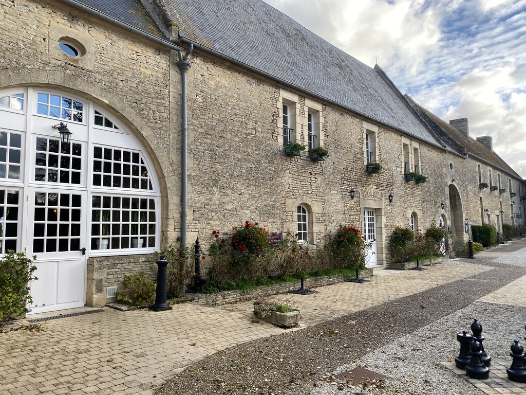 We arrived at our hotel – La Ferme de la Rançonnière – Hotel & Restaurant in Crepon https://www.ranconniere.fr/en/ to a lovely, warm welcome. Our TousAntiCovid app was swiped/approved and we were allowed to stay! The buildings form a square round a courtyard and the rooms are accessed through various wooden doors and stairways on all sides. The hotel is listed by the Logis group as ‘Cosy’ and the restaurant as ‘Gourmand’. It was all really lovely and to be highly recommended.