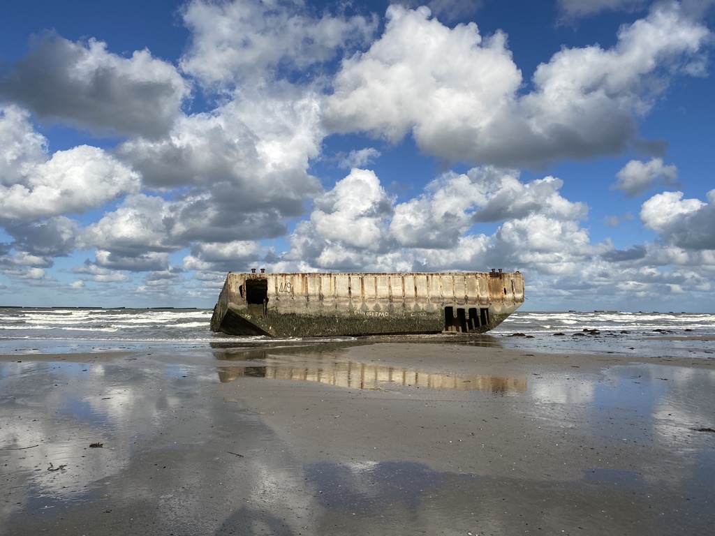 Late morning, a visit to Arromanches-le-Bain to see the remains of the Mulberry Harbour and a whole education about the concept, the delivery by sea and the harbour in action.
