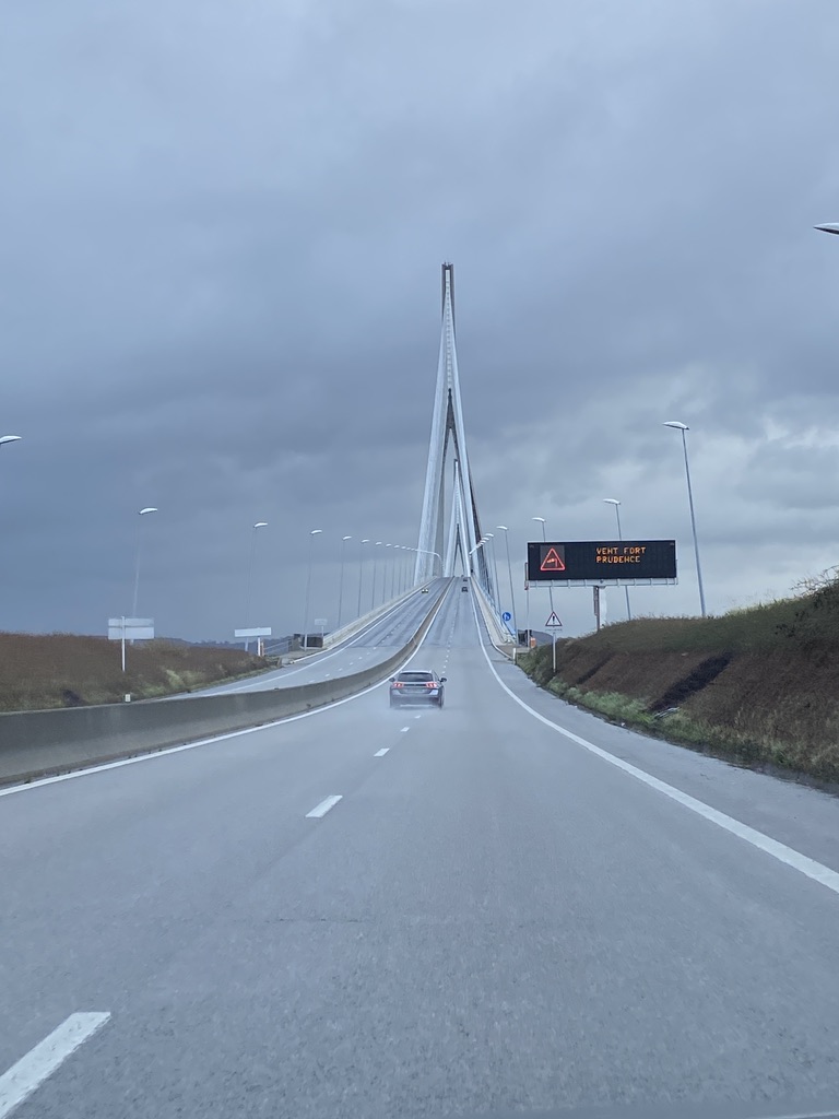 At the Pont de Normandie https://www.bridgeinfo.net/bridge/index.php?ID=68 was a sign saying – Vent Fort Prudence – Strong Wind Caution!! When my brother and I drove through France to Spain in 2020 the signs said ‘Vente Souffle Violent’, so this’ll just be a bit breezy then!