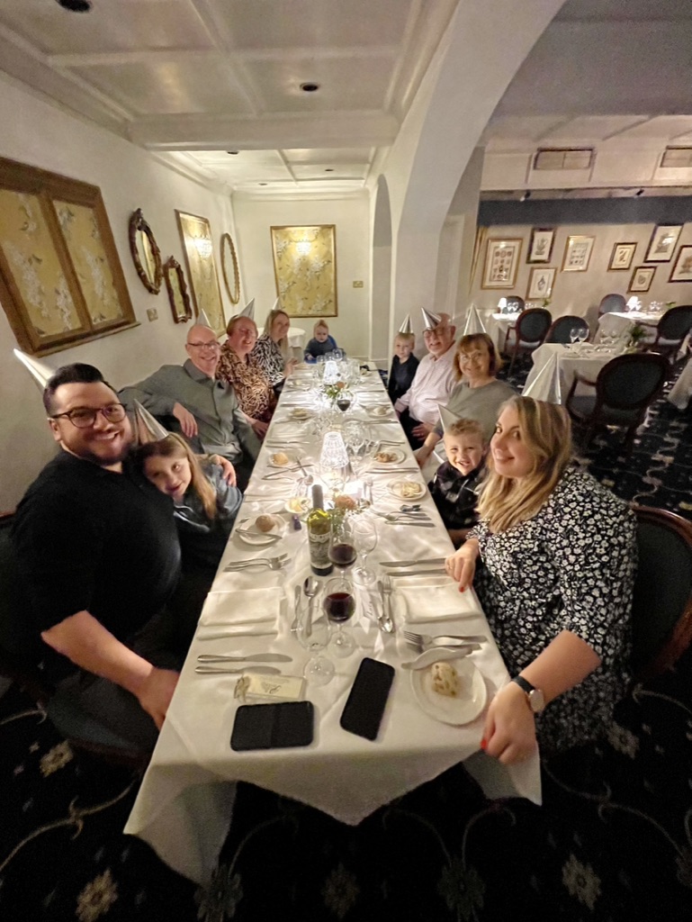 Then a speedy turnaround for drinks and dinner. Who asked JW/Grandad to help out with the kids’ hair?!