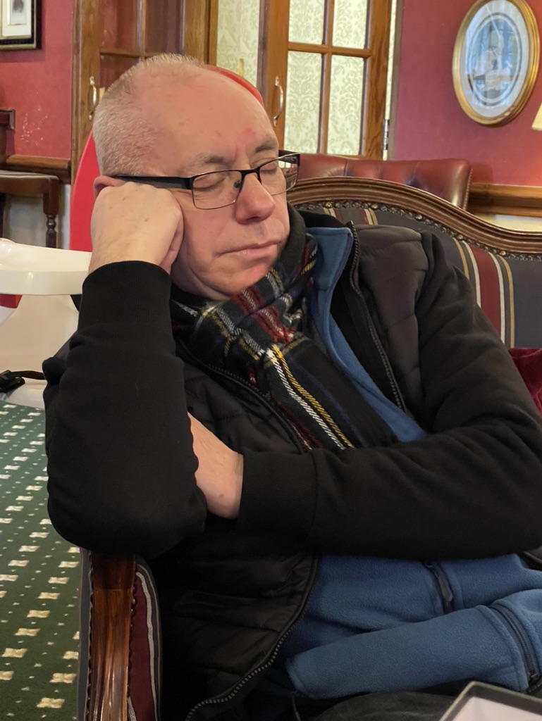 The mini-blip was the planned – but unbookable – lunch at Wetherspoons in Lymington High Street. Most Wetherspoons are enormous; this was comparatively small, it was a Saturday market day and the place was jam-packed! Having quickly looked at other possibilities, the decision was made to make a return trip to the tranquility of the Passford House Hotel, who whipped around and arranged a sandwhich lunch for 12 in short order. A lounge to ourselves with an open fire.