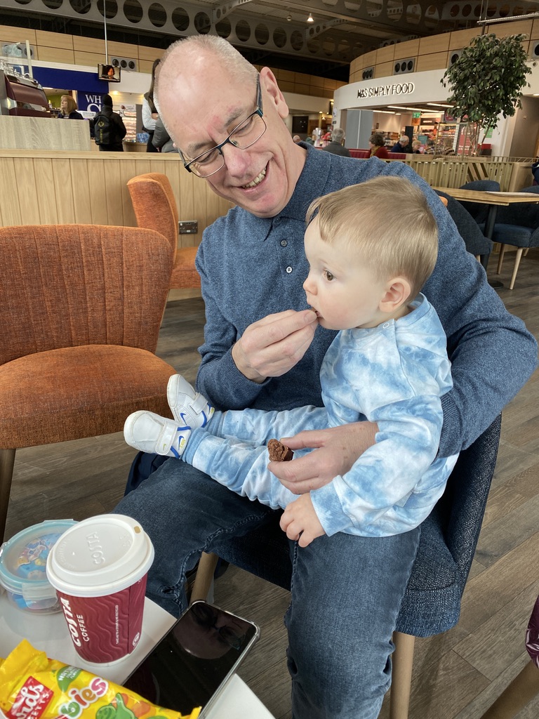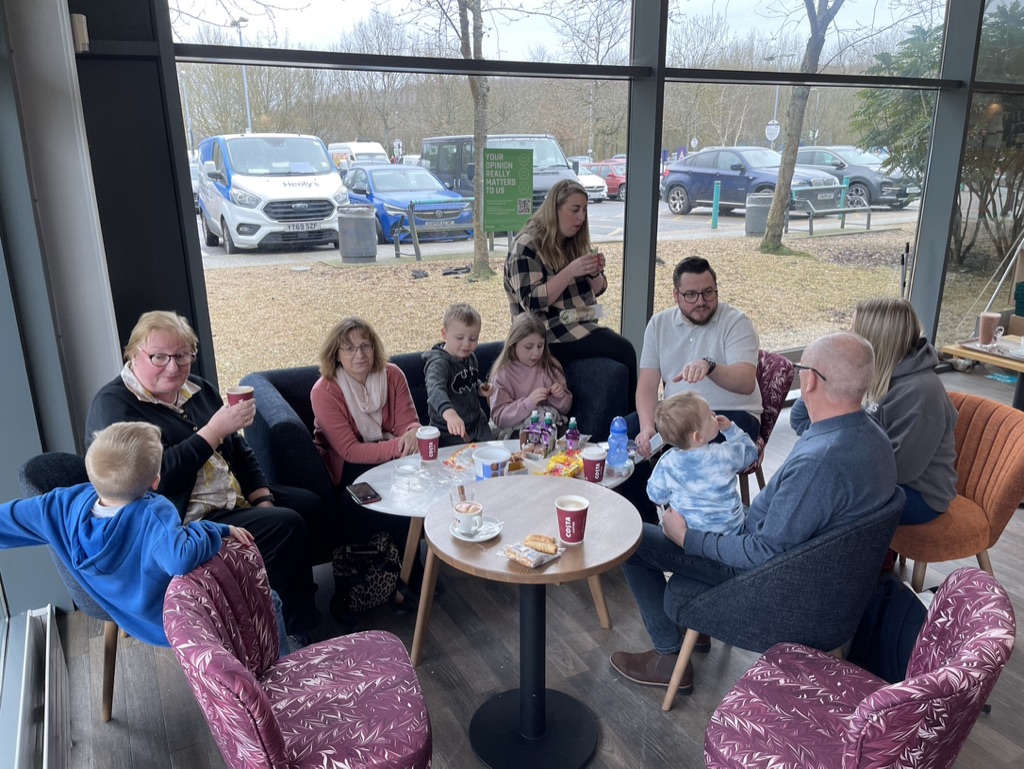 So, he knew he was going to Winchester Services for elevenses with Elaine, Husband & me and that we are travelling on to Beaulieu. What he didn’t know was the whole family were meeting us at Winchester Services!