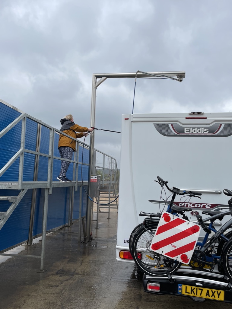 Just before Alcossebre is a motorhome service area with the best washing facilities I’ve seen, including a drive-over drain, high, long reaching jet wash and, a platform with steps on either side so you can reach the roof. Great fun and so lovely to be looking smart again after the journey.