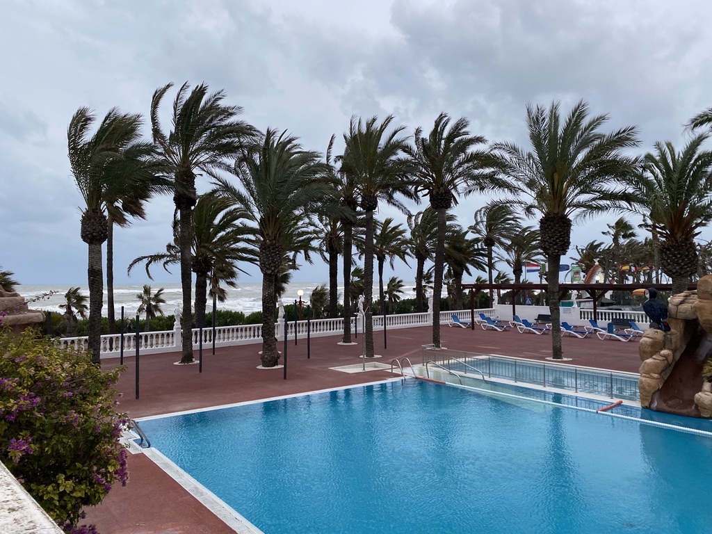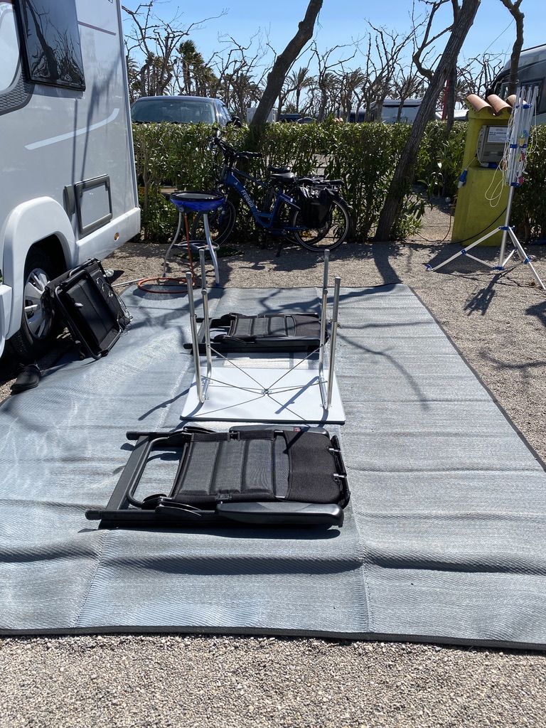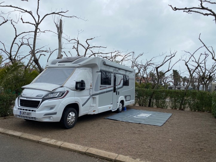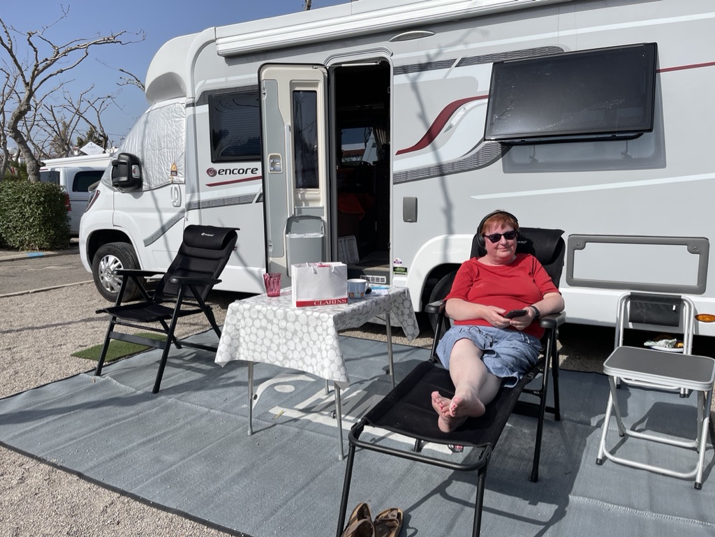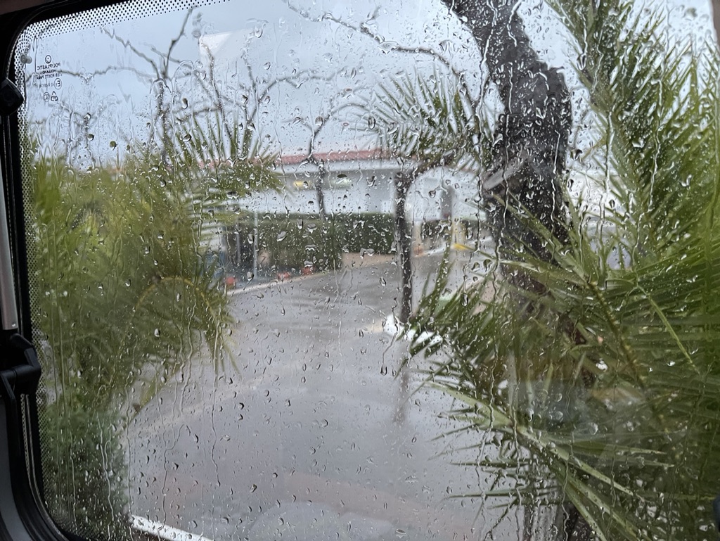 After my dramatic departure in 2020 due to the start of the pandemnic, it’s so lovely to be back at Camping Playa Tropicana http://www.campingplayatropicana.com. Not quite the same weather to greet us, but still lovely to be here.
