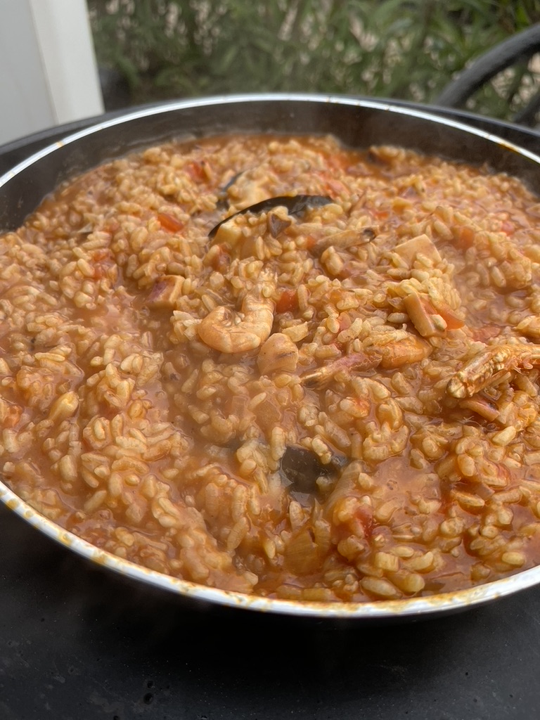 A delicious salad lunch at Cava Isabel restaurant https://m.facebook.com/pages/Bar%20Casa%20Isabel/160496597362811/ on the way back and, later – it’s paella night!