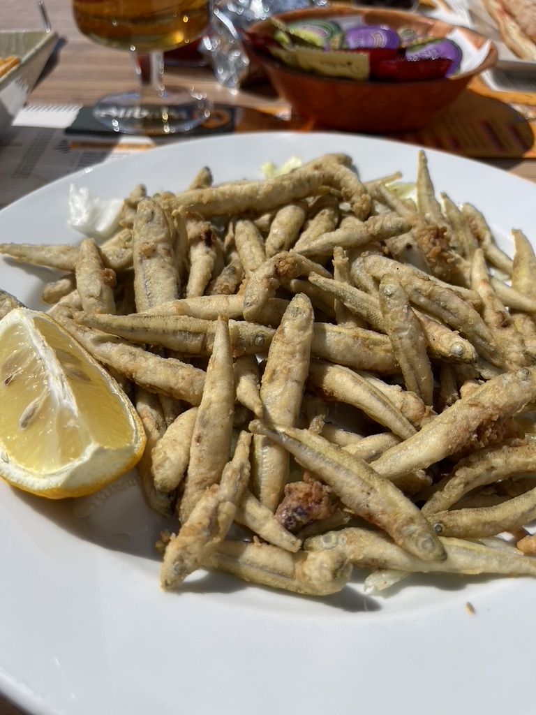 Onwards into Benecarló for lunch and, weirdly, ate at a Turkish restaurant on the port. Ali Baba https://www.facebook.com/KEBAB.ALIBABA.PUERTO/about. They served some nice looking whitebait (if you like that sort of thing, which I don’t, but Husband does!). It was obviously very popular with the English locals.