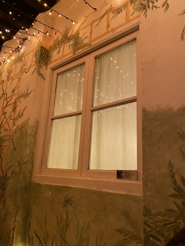 Our table was in a small private room with giraffes, it was a squeeze but very jolly. One of us went to the loo and found they could wave to us through an interior window located just above my head!! Very odd.