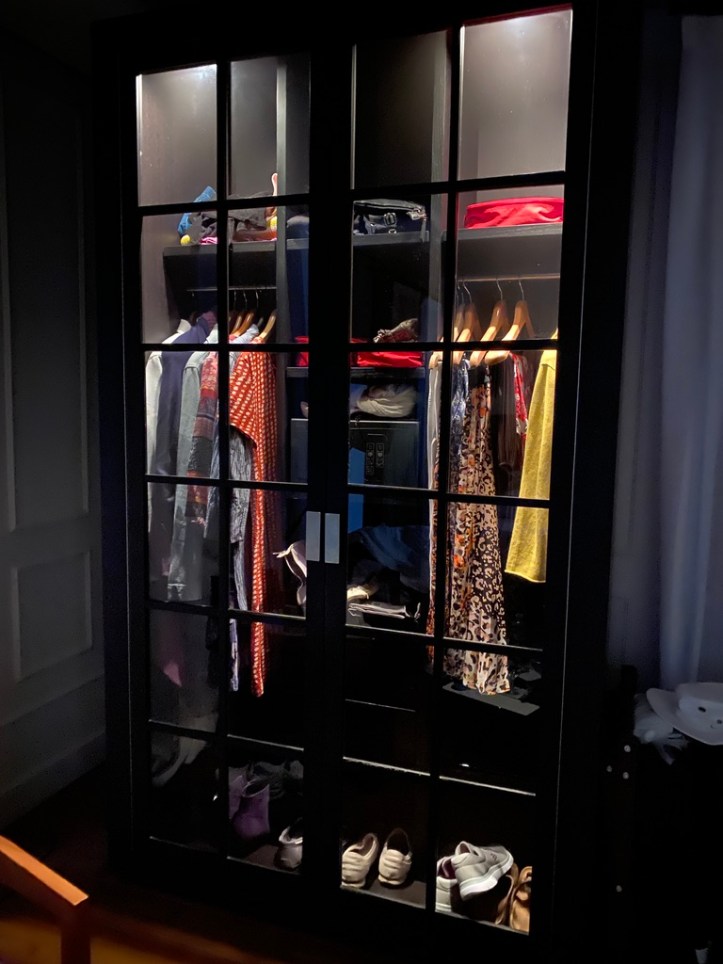 Our rooms are nice but fashionably dark; thank goodness for the light-up wardrobe!