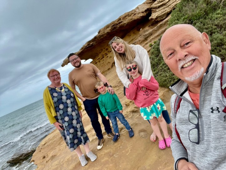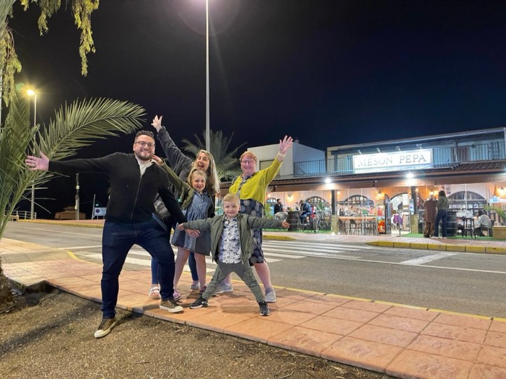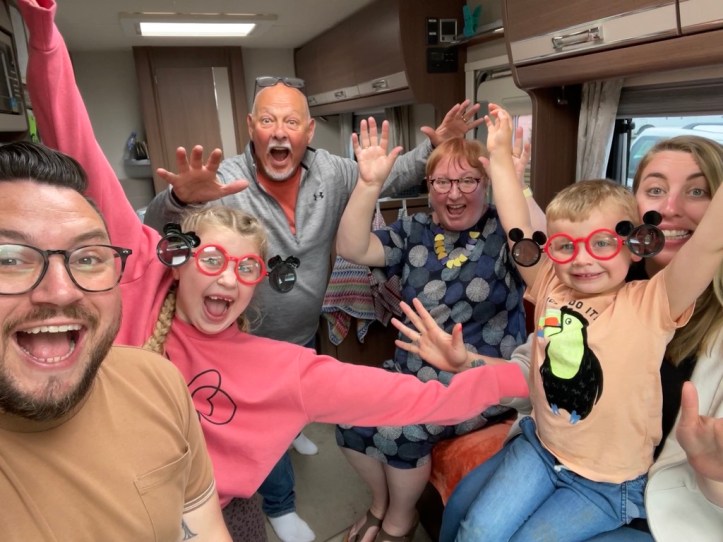 OK, I took my time to choose a ‘pitch’ (there are no pitches, just open land!). We are settled and the family arrive. We haven’t told anyone back home so the photo we sent on our family WhatsApp group was rather a surprise.