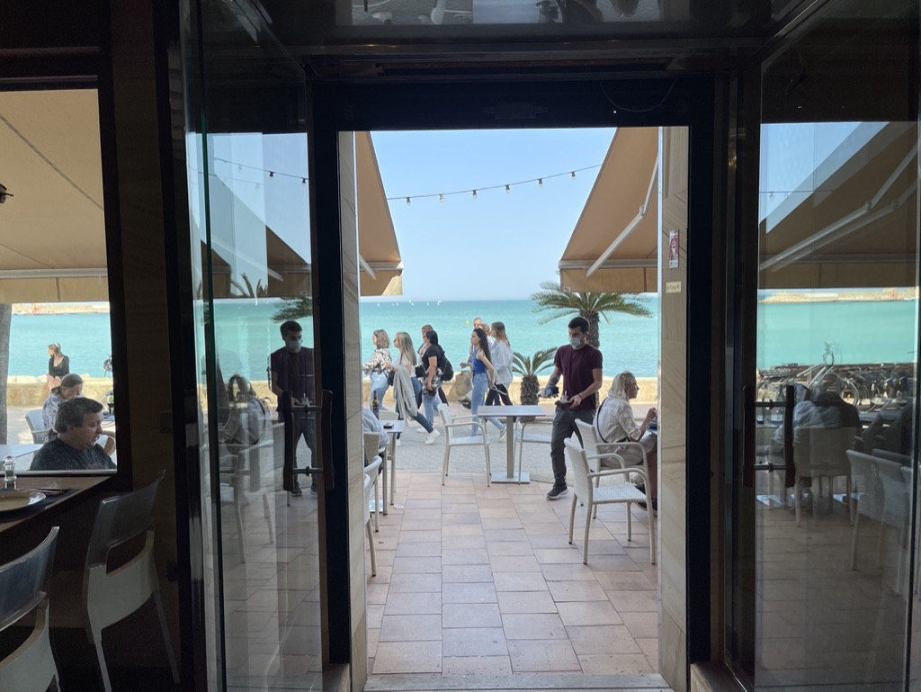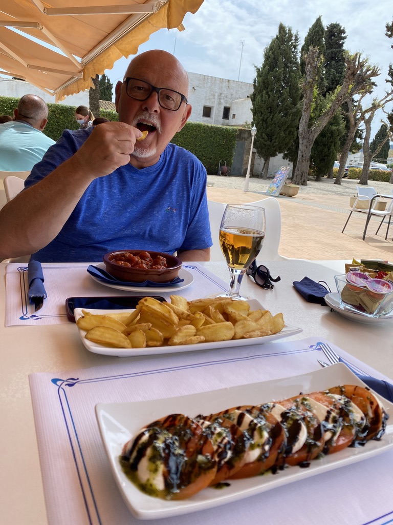 We cycled back to the port area and found a delightful place on the seafront Restaurante Ca`María where we had more Cava and a delicious celebratory lunch. Sadly, the restaurant seems to have closed since.