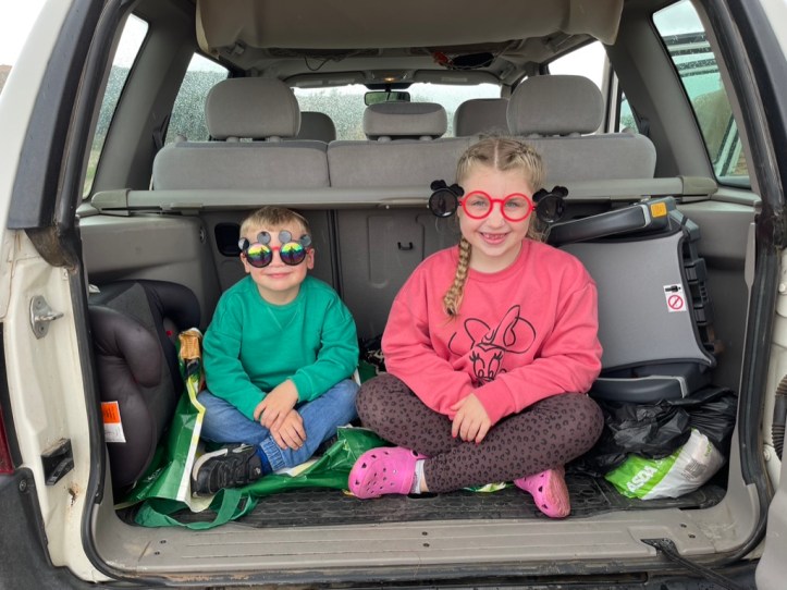 Don’t tell anyone but the kids rode a short distance in the boot so we can all fit in the car.
