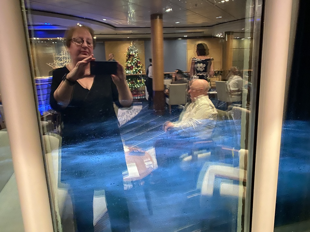 All around the ship are people lifting fully decorated Christmas trees into giant boxes and winding up metres of garlands with lights!! They are never getting rid of the bits of red glitter though; they’re simply everywhere!! Wherever do P&O store 7 ships’ worth of Christmas decorations until next year?!