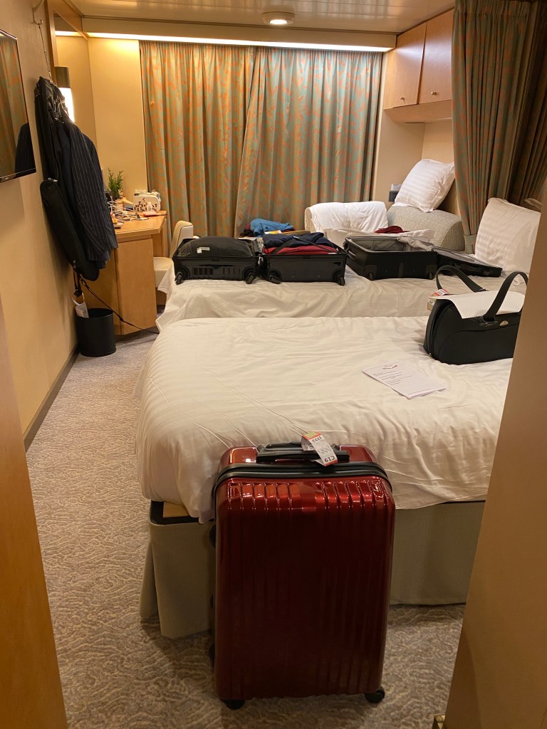 Standard procedure is to pack and put your big suitcases outside your stateroom for collection before midnight to aid the unloading process in the morning.